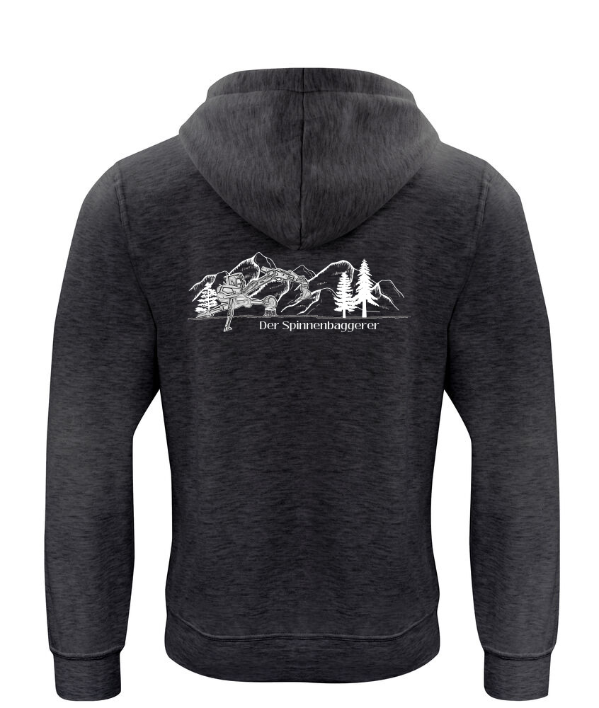 Unisex Spinnenbagger Hoody. Rippenbündchen an den Ärmeln und am Bund. Elastische Kordel in der Kapuze und Kängurutasche. Kopfhörer / Smartphone geeignet. Waschbar bis 40°C.